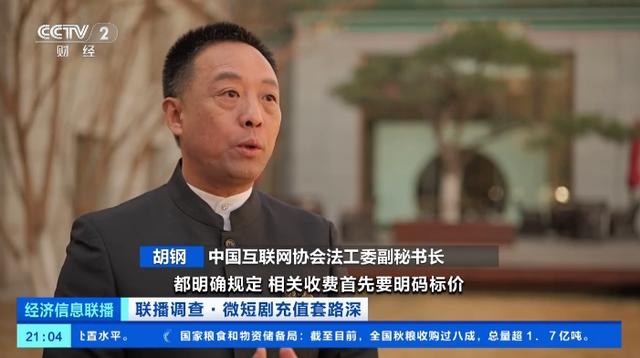 中国互联网协会法工委副秘书长胡钢:《价格法》和《消费者权益保护法》都明确规定,相关收费首先要明码标价。而我们现在看到的微短剧,很多时候相关经营者在明码标价方面并没有做到足够的清晰明确。对于微短剧来说,它在《价格法》里面属于市场调节价。价格必须是公平合理的,否则就违反了诚实信用的基本的《民法典》准则。